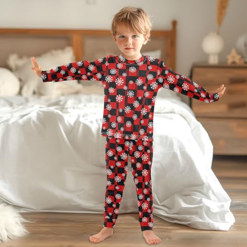 Pajama Sets Long Sleeve Red Black Snowflake Winter Soft Comfy Sleepwear 2 Piece PJS 3-8T 1
