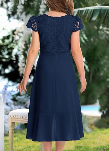 HOSIKA Girls Vintage Lace Chiffon Ruffle Sleeve A-Line Wedding Party Junior Bridesmaid Dress for Kids 6-12 Years 5