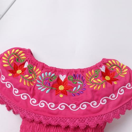 Kids Toddler Girls Traditional Mexican Off-Shoulder Floral Embroidered Drape Dress 5
