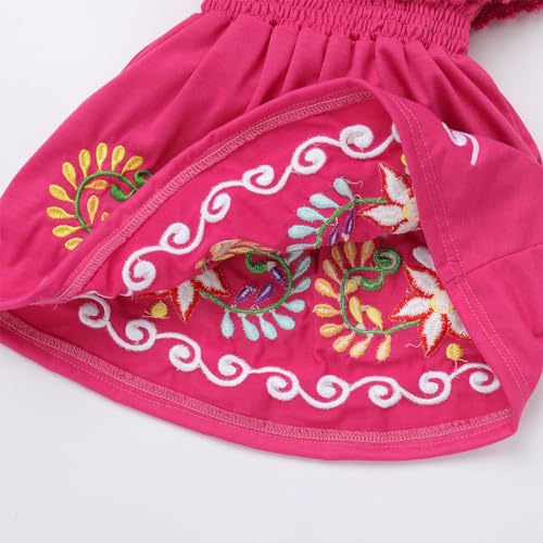 Kids Toddler Girls Traditional Mexican Off-Shoulder Floral Embroidered Drape Dress 6