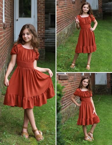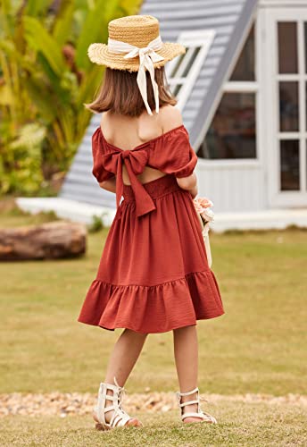 Arshiner Girls Tie Back Short Sleeve Ruffle Hem Off Shoulder Casual Elegant Dresses 4-12 Years 4