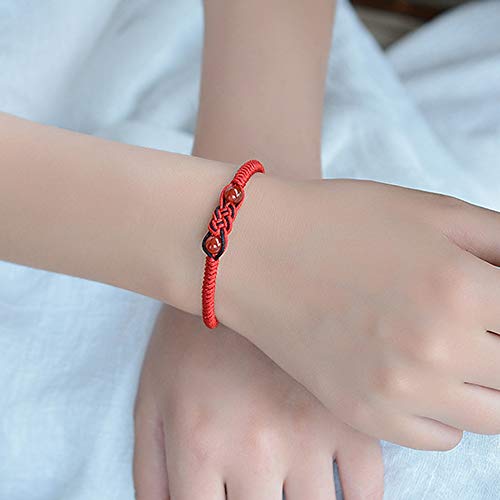 • This bracelet is purely handmade. The beads are natural agate stone. The Chinese knot woven in the middle is a symbol of auspiciousness and luck. There are two colors: red rope with red agate, black rope with black agate. You can buy a pair as a couple bracelets. They symbolize the enduring love. Women can wear red color, and men can wear black color.