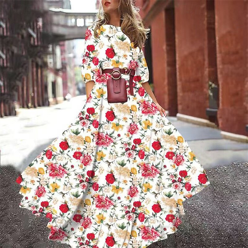 More information about Women's Long Dress Maxi Dress Casual Dress Swing Dress Fashion Modern Daily Beach Weekend Regular Fit Flower Half Sleeve Crew Neck Light Yellow Black White Yellow Spring Fall