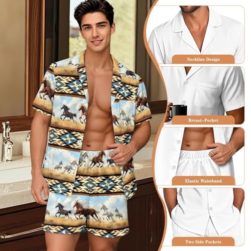 AFPANQZ Men's Lightweight Pajama Set Soft Lightweight Sleepwear, Button-Down Top & Breathable Lounge Shorts 1