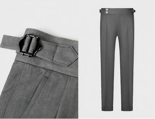 More information about Men's Classic Dress Pants, High Waist Double Pleated, Gray with Side Adjusters