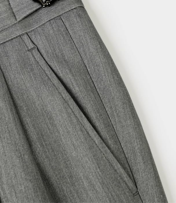 Men's Classic Dress Pants, High Waist Double Pleated, Gray with Side Adjusters 7