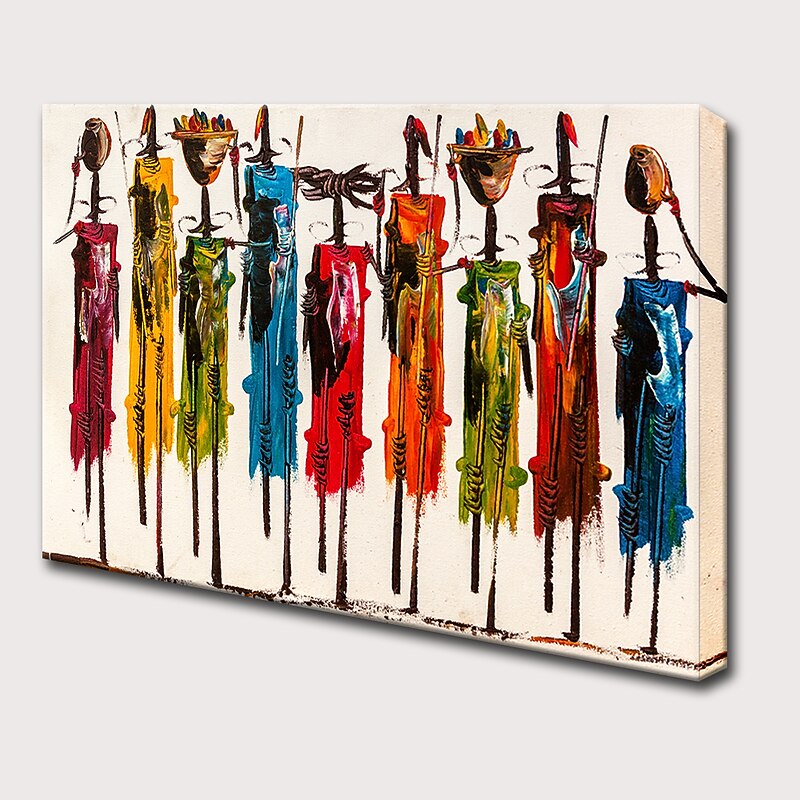 HOT ! Large Size Oil Painting 100% Handmade Hand Painted Wall Art On Canvas African Tribe Soldiers Abstract People Classic Modern Home Decoration Decor Rolled Canvas No Frame Unstretched