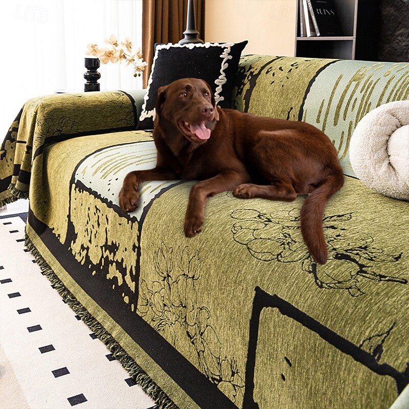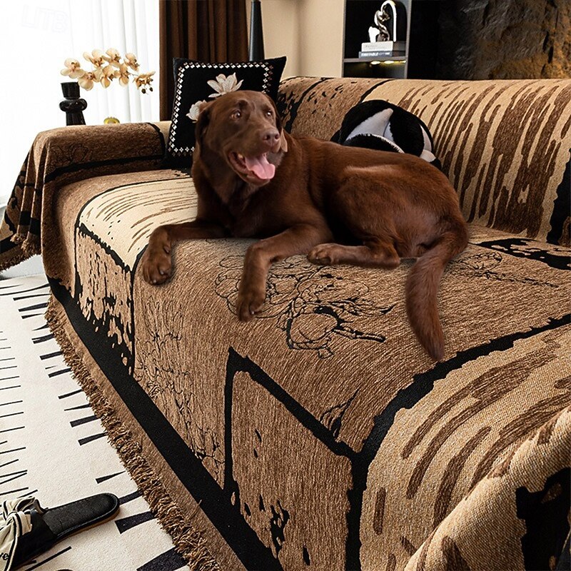 HOT ! Vintage Chenille Anti-Scratch Sofa Protector For Dogs Throw Couch Cover Pet Friendly