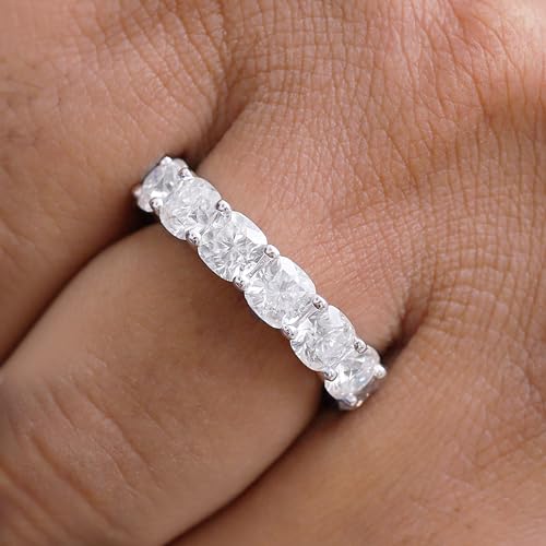 SAVEARTH DIAMONDS Eternity Wedding Band Ring For Women, 9 CT 5MM Cushion Cut Lab Created Moissanite Diamond 4.5MM Width Full Eternity Stackable Engagement Ring In 18K Gold Plated 925 Sterling Silver 4