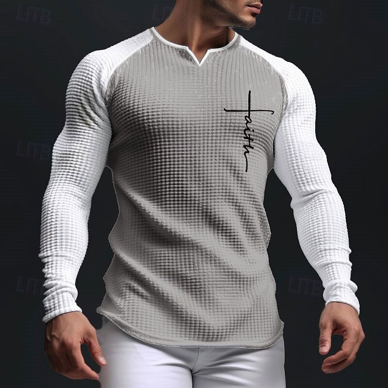 More information about Men's Graphic Letter Faith T Shirt Raglan T Shirt Waffle T Shirt Long Sleeve T shirt 3D Print V Neck Shirt Daily Classic Outdoor Sports Outdoor Casual Going out White Brown Dark Blue Spring & Fall