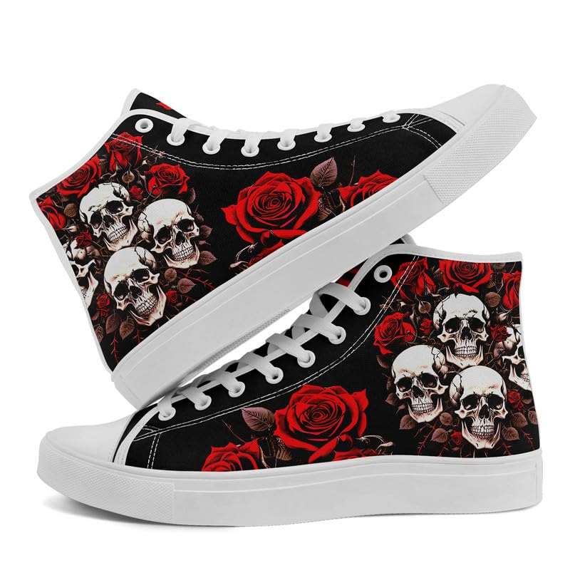 • Comfortable:Our skull high-top canvas shoes are lightweight and offer flexibility for ease of movement. The canvas material conforms to the shape of the foot over time, providing a comfortable fit. We also feature cushioned insoles for added comfort during extended wear.