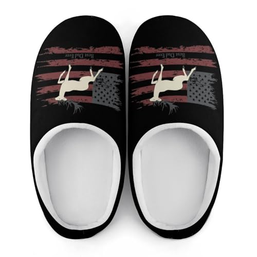 Best Dad Ever U.S. Flag Women's Cotton Slippers Indoor Outdoor Slip-on Warm House Shoes with Anti-Skid Rubber Sole 6