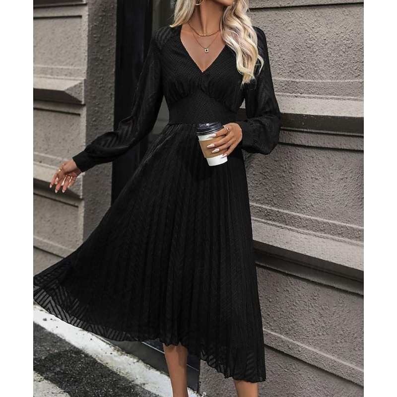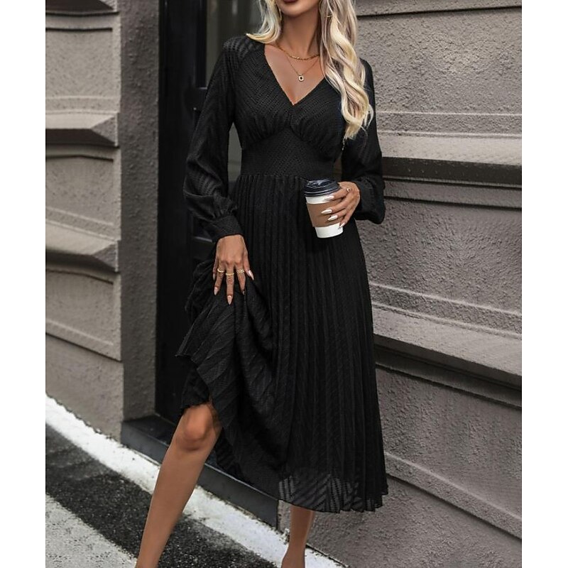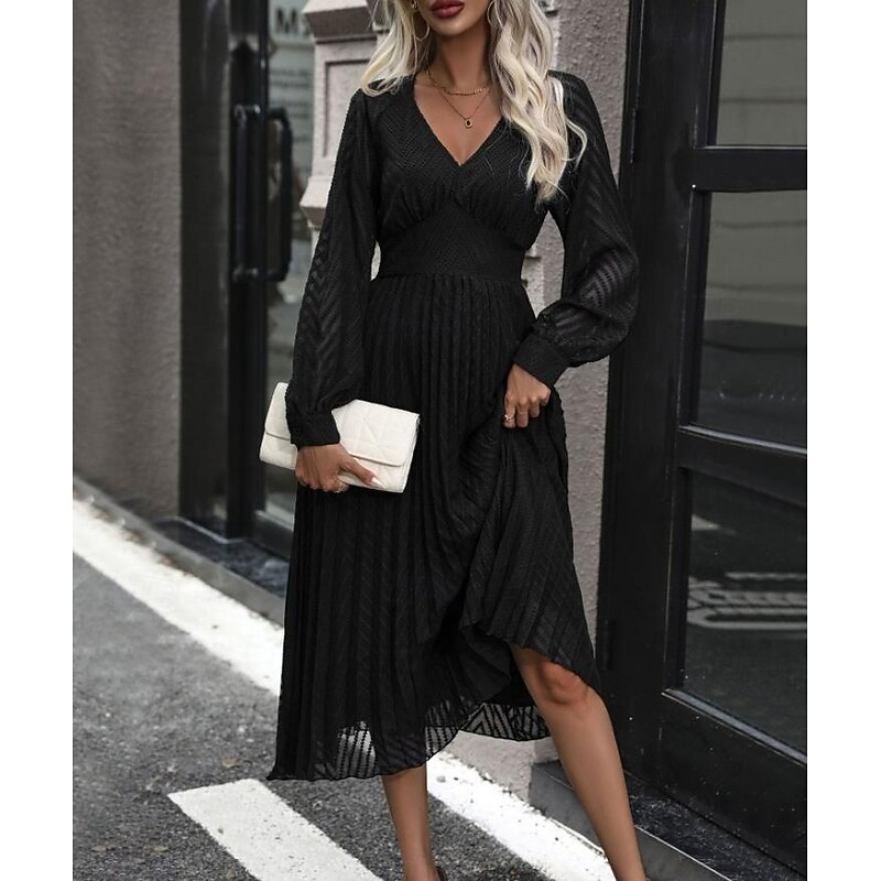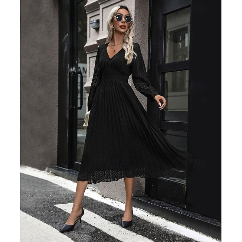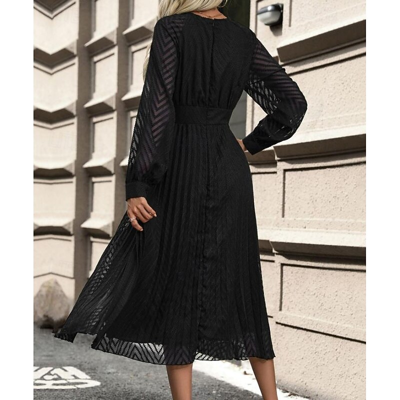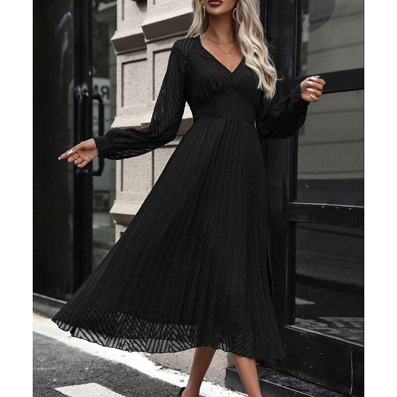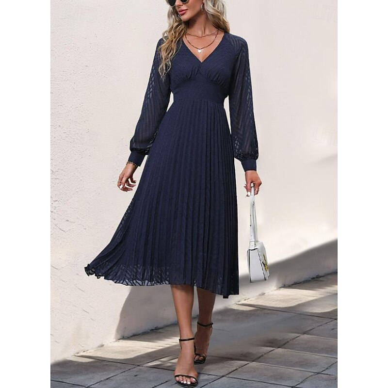 More information about Women's Plain Dress Midi Dress Mesh Patchwork Elegant Vintage V Neck Long Sleeve Black Blue Color