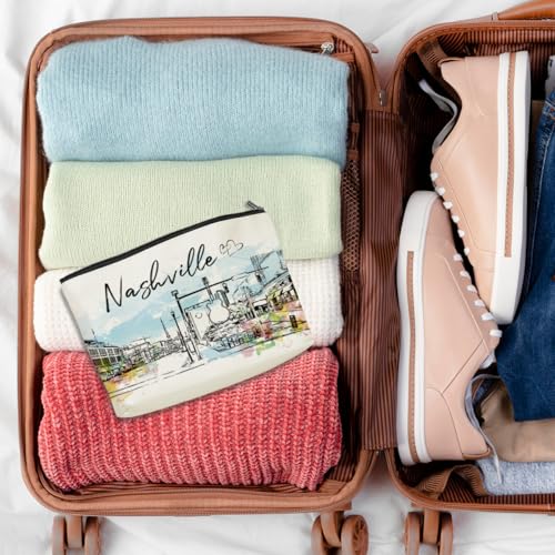 HOT ! Nashville Souvenirs Travel Essentials Watercolor Nashville City Gifts for Woman Girls Makeup Bag for Purse, Travel Essentials Cosmetic Bags, Birthday Christmas Bachelorette Party Favors