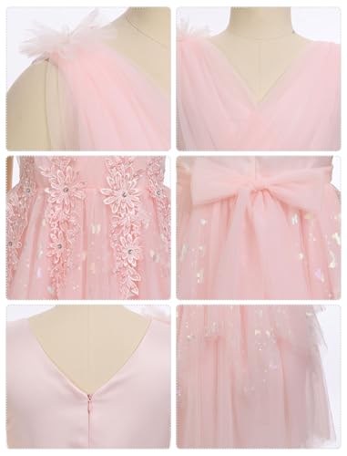 IDOPIP Flower Girl Sequin Butterfly Dress for Kids Wedding Pageant Party Long Gown Princess Birthday Handkerchief Tulle Dress 4