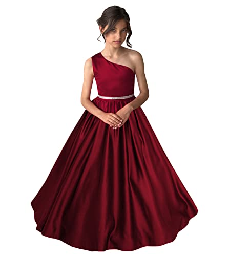 More information about One Shoulder Girls Pageant Dresses Stain for Kids Princess Formal Party Ball Gowns with Pockets PA037