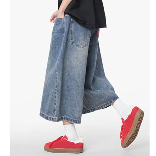More information about Men's Classic Washed Cropped Denim Pants, Button Waist Loose Wide Leg Casual Pants Going Out Fashion Trousers with Pockets