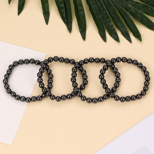 BYSON 4 Pcs/Set Black Hematite 8mm Ball Bead Magnet Stone Bracelet for Women Men Elastic Stretch Beaded Bracelets Jewelry Unisex 6