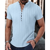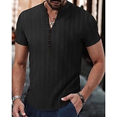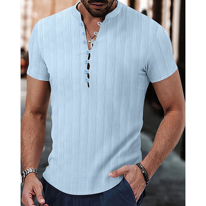 More information about Men's Shirt Popover Shirt Summer Shirt Casual Shirt Beach Shirt Black White Pink Blue Beige Short Sleeve Plain Band Collar Vacation Hawaiian Jacquard Clothing Apparel Fashion Casual Comfortable