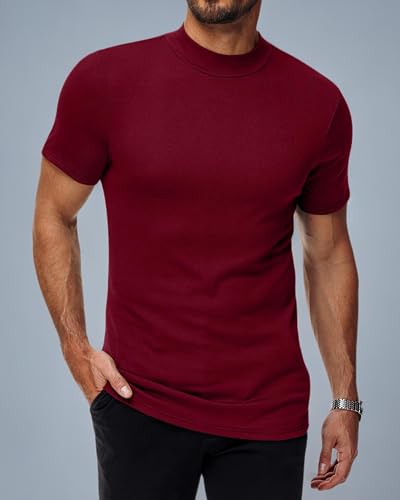 Ficerd 3 Pack Men's Mock Neck T Shirts, Cotton Short Sleeve Turtleneck Tee Shirts Slim Fit Basic Casual Solid Undershirt Tops 6