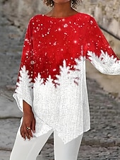 More information about Christmas Women's Blouse Graphic Snowflake Vintage Tropical Stylish 3/4 Length Sleeve Crew Neck Boat Neck Regular Tops Daily Holiday Print Red Spring Fall Winter