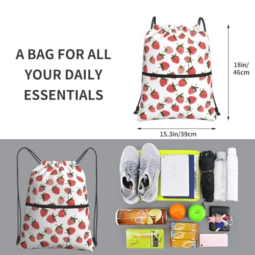 Little Strawberry Drawstring Bags Gym Bag For Women Men Beach With Zipper Pocket Bag Outdoor 18 * 15.3 Inches 7