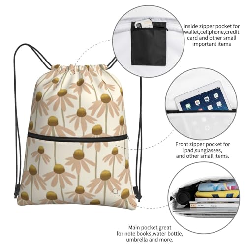 Chamomile Floral Drawstring Bags Gym Bag For Women Men Beach With Zipper Pocket Bag Outdoor 18 * 15.3 Inches 7