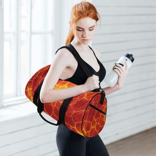 HOT ! Flame Lava Sports Duffel Bag Stylish Barrel Gym Bag with Spacious Main Compartment Side Pockets Adjustable Shoulder Strap for Sports, Outdoor Training and Short Trips