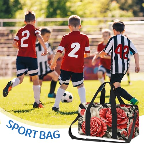 Rose Flower Sports Duffle Bag for Women Men Waterproof Overnight Weekender Bag with Adjustable Strap Travel Tote Bags for Beach Yoga Work Dance Swim 5