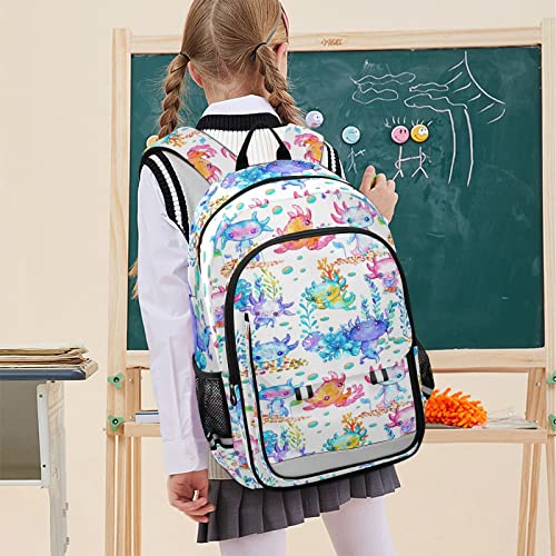 HOT ! Watercolor Cute Axolotl Backpack Lightweight Laptop Backpack School Bag Student Travel Daypack with Reflective Stripes