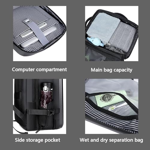 • [Large Capacity Hard Shell Backpack]: Large capacity travel backpack - Backpack has many compartments for easy organization and expansion. 1* main pocket holds your travel items and fits 5-8 pieces of clothing; 1* wet and dry separation bag can hold cosmetics; 1* mesh bag in the middle can protect items from being pressed; Separate laptop compartment can accommodate small computers up to 15.6/16/17 inches; Storage pocket on the side can hold an umbrella or water bottle.