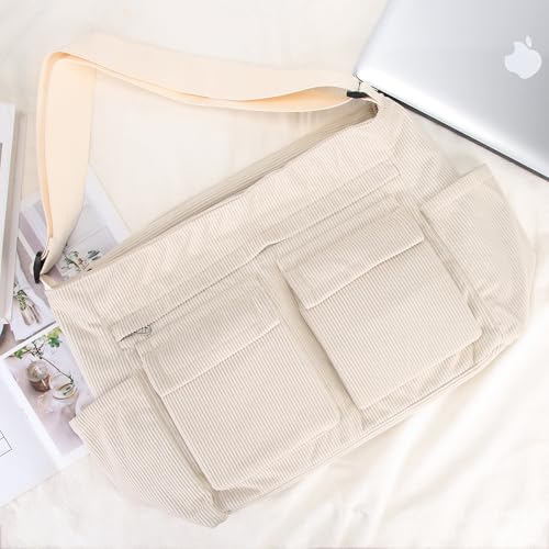 Lightweight Large Messenger Bag Laptop Tote Bag for School Cute Corduroy Crossbody Bag 5