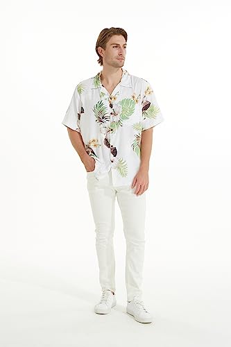 HOT ! Matchable Couple Hawaiian Luau Shirt Smock Top Wide Legged Pants in Pineapple Garden White