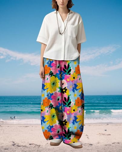 More information about Womens Baggy Pants Floral Print Wide Leg Trousers Casual Elastic Waist Lantern Pant with Pockets for 2025 Summer