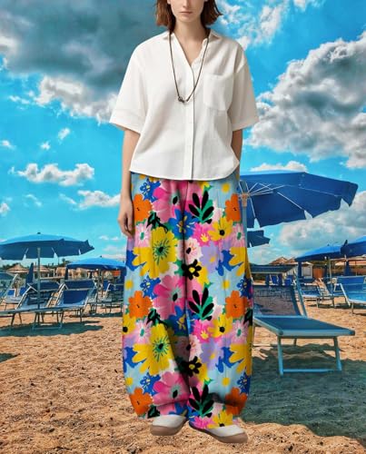 • Features:Women's bohemian floral print trousers with floral pattern. Elasticated waistband, loose wide leg, long, casual loose trouser shape, side pockets,also a perfect gift for your wife, kids, friends.