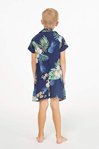 Matching Hawaiian Luau Sibling Boy Girl Wrap Dress Aloha Shirt in Pineapple Garden Navy 5