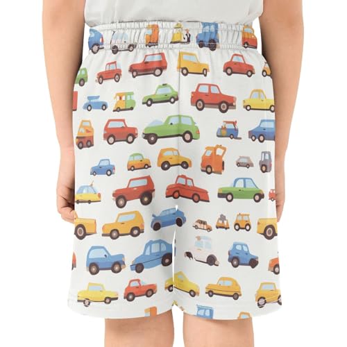 Boys Athletic Shorts with Pockets Cartoon Car Running Basketball Shorts for Youth Elastic Waist Size 7-8 5