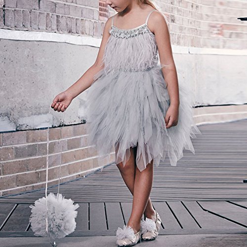 More information about OBEEII Little Girl Swan Princess Feather Fringes Tutu Dress Pageant Party Wedding Dance Formal Photo Prop Short Tiered Gown