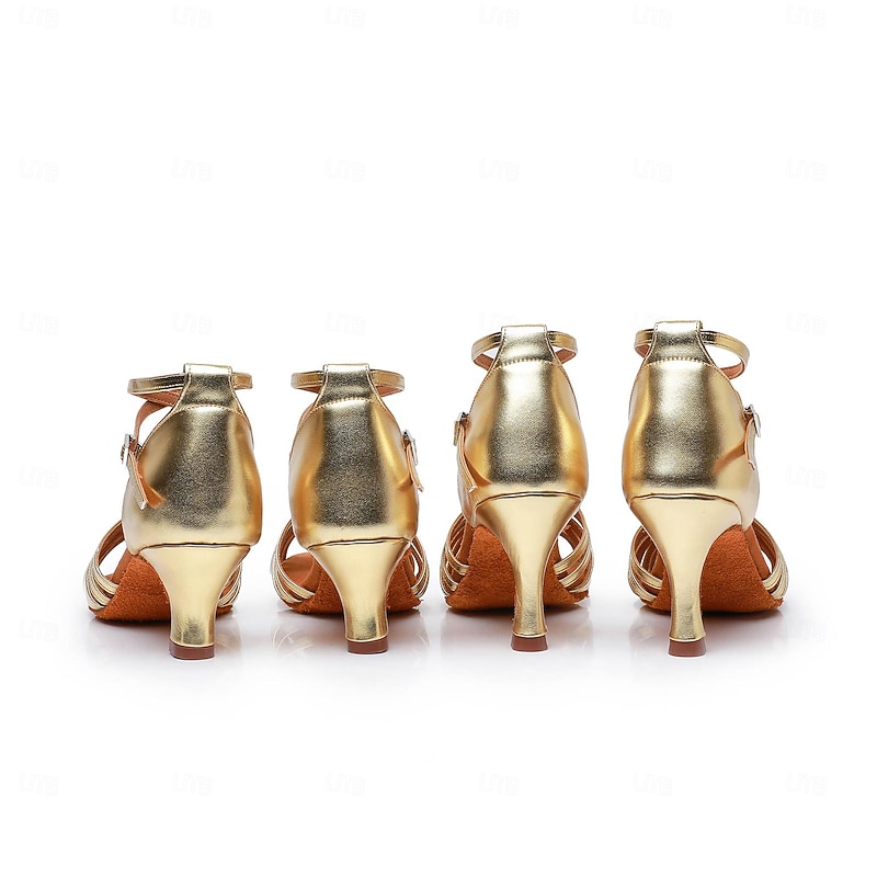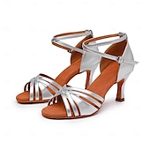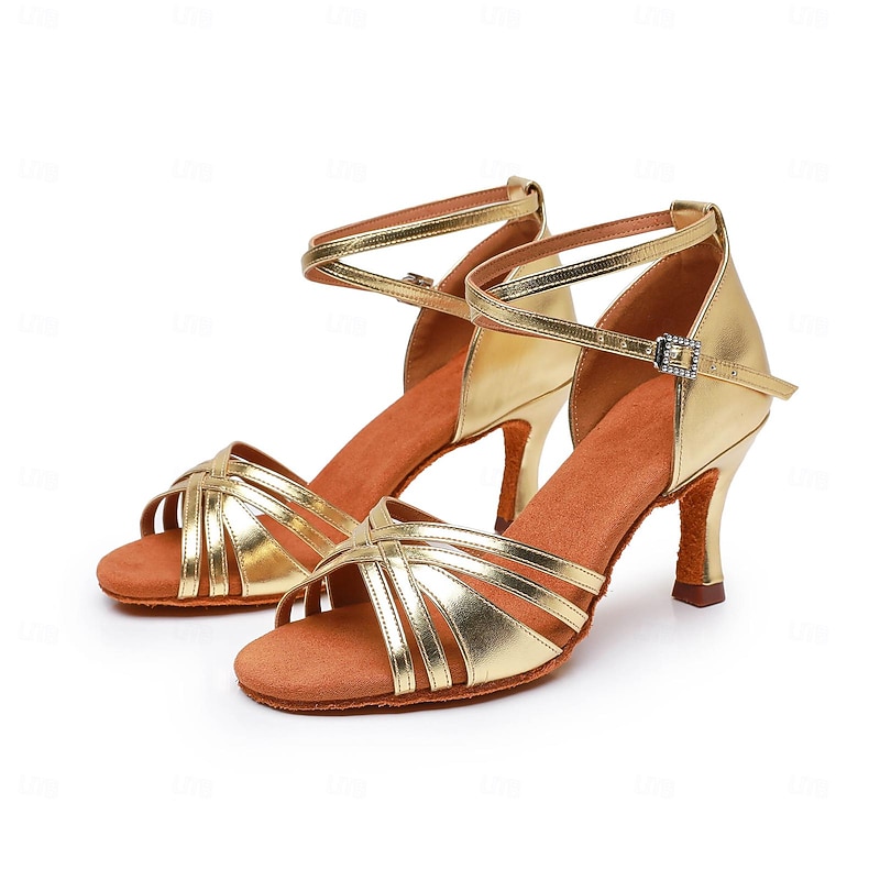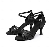 Highlights [Fabric] : Crafted from luxurious satin and high-quality PU, these women's Latin dance shoes offer a soft sheen and durability, perfect for both dance events and formal occasions. The combination of materials ensures a comfortable and stylish wear throughout extended periods. [Fit] : Designed with an elegant open-toe style, these shoes feature a crisscross strap pattern that not only provides a secure fit but also adds a visually appealing touch to the overall design. The moderate, flare heel height offers a graceful silhouette while maintaining comfort and stability. [Design Highlights] : The shoes feature an intricate ankle strap with an adjustable buckle, enhancing stability during movement. The suede outsole is specifically designed for optimal traction on dance floors, allowing for smooth and confident steps. [Occasions] : Ideal for professional Latin dance performances, these shoes are also a great choice for parties and formal events. Their stylish design and functional features make them suitable for a variety of occasions, adding elegance and flair. [Size Range] : Available in a wide range of sizes from US5/EU35 to US9.5-10/EU41, these shoes are designed to accommodate different foot sizes. It is recommended to select your usual size for the best fit.