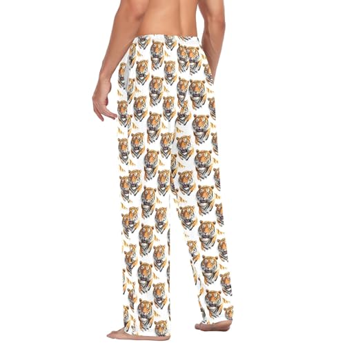 Mens Cotton Pajama Pants Sleep Lounge Pj Bottoms Sleepwear with Pockets Drawstring S Tiger 1