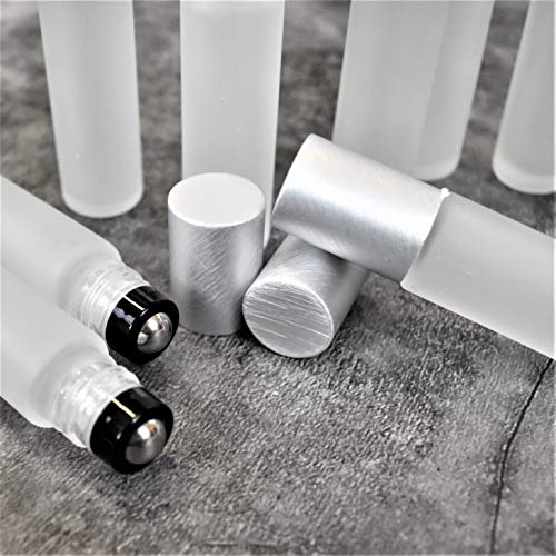 12-Pack Frosted Clear Glass Roller Bottles with Brushed Silver Leakproof Caps – Premium Quality Empty Roll-On Bottles for Essential Oils, Perfumes, Serums, DIY Aromatherapy & Beauty Products 5