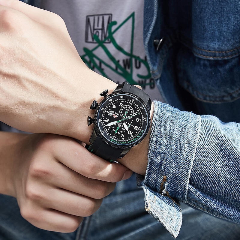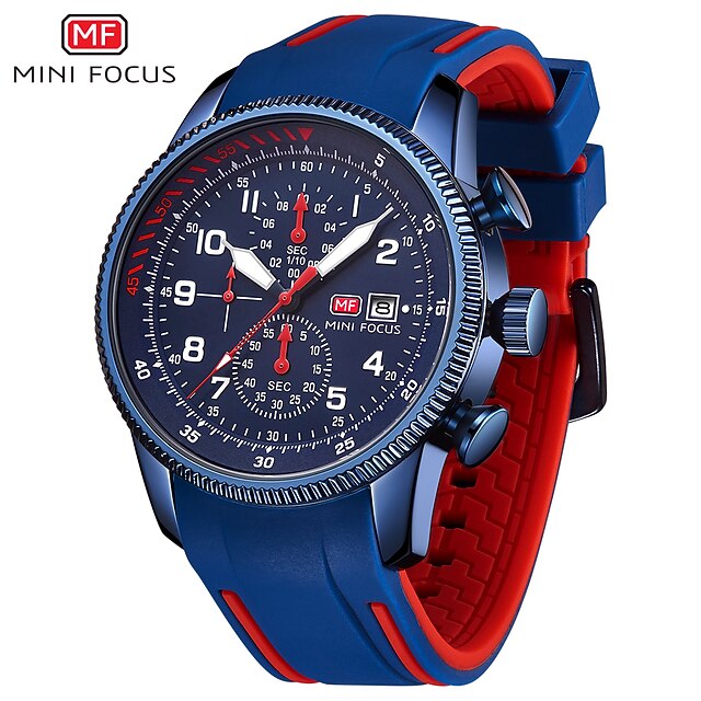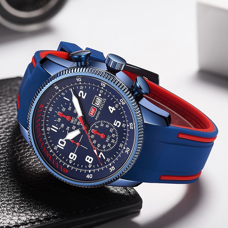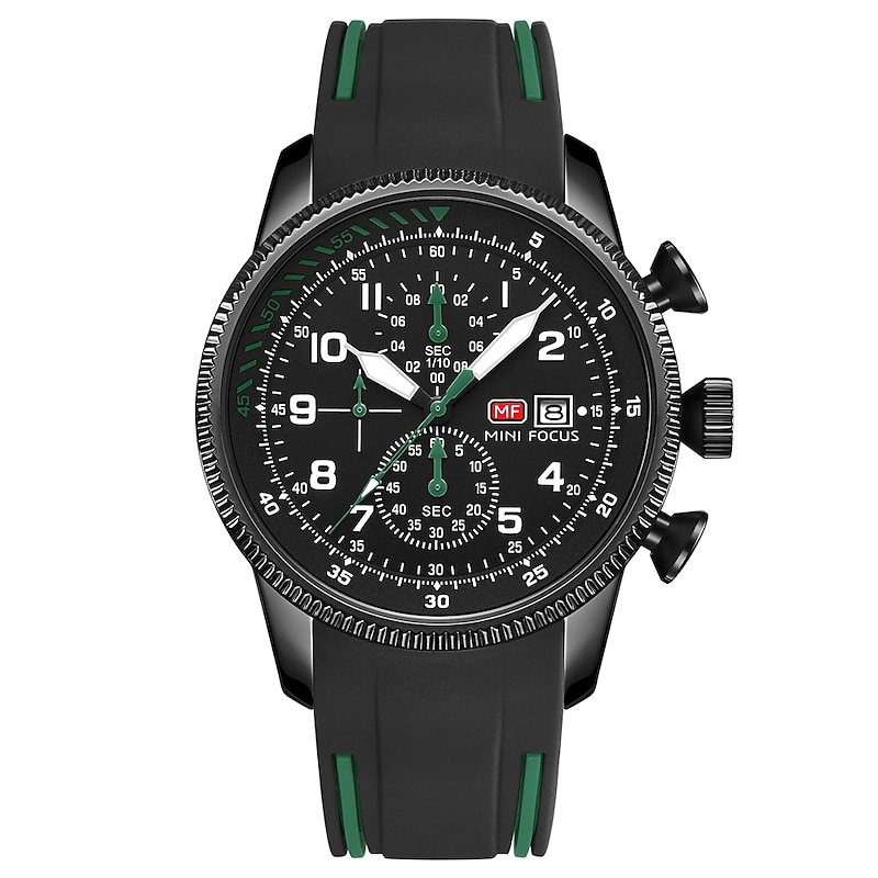 More information about MINI FOCUS Men Quartz Watch Large Dial Outdoor Fashion Business Luminous Three Time Zones Calendar Waterproof Silicone Watch