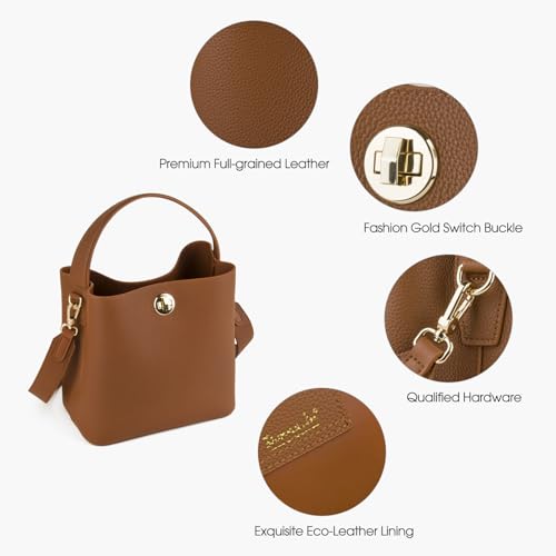Genuine Leather Bucket Tote Bag for Women, Small Crossbody Bag and Trendy Shoulder Bag with Adustable Strap 5