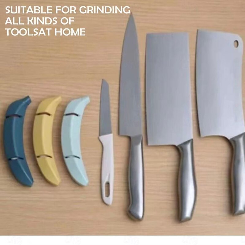 HOT ! 3 pcs Banana Knife Sharpener, Kitchen Knife and Scissor Sharpener Tool, Dual-Stage Banana Shape Knife Grinder for Home Cooking
