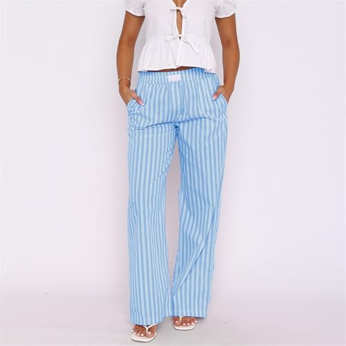 HOT ! Striped Pants for Women Summer, Lightweight Pants Women, Wide Leg Elastic Waist Palazzo Pant Casual Baggy Trousers