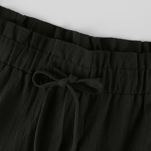 HOT ! Cropped Linen Pants Women Summer Elastic Waist Wide Leg Crop Pants Casual Drawstring Lightweight Baggy Beach Trousers