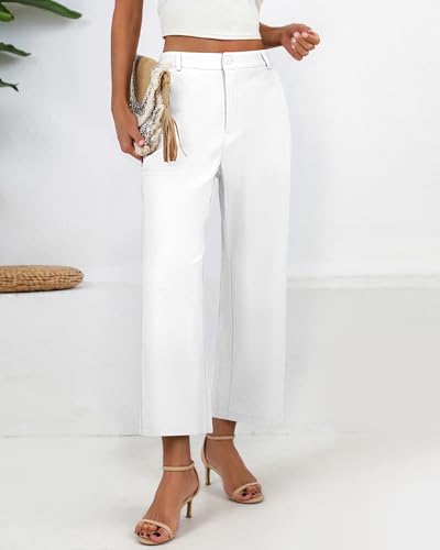 HOT ! Neer Women's Cotton Linen Palazzo Pants, Casual Wide Leg Lounge Pants Summer High Waisted Flowy Trousers with Pockets(White,L)