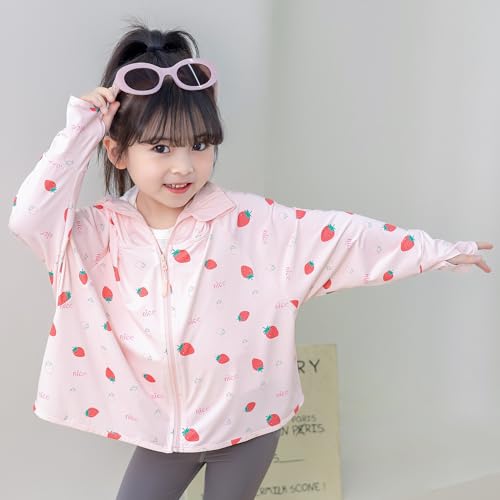 Loizziuy Girls Strawberry Sun Protection Jacket Cooling Hooded Zip-Up Hoodie Girls Boys UPF50+ Running Sweatshirts Shirt 6