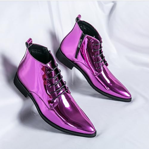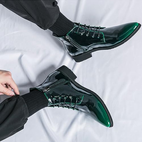 Men's Patent Leather Pointed Toe Chelsea Dress Boots Fashion Lace-up Luxur Side Zipper Chukka Boots High Top Waterproof Shiny Business Formal Oxford Ankle Boots 6