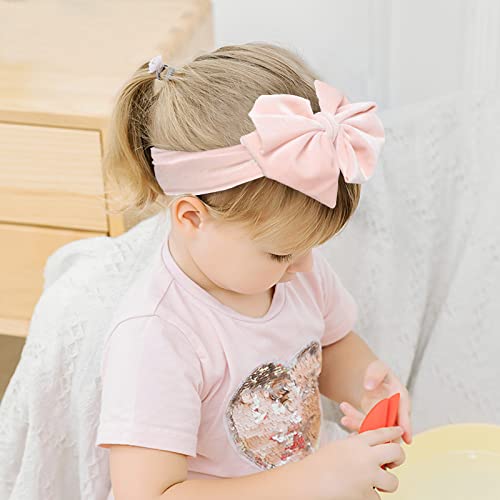 Whaline Baby Girl Velvet Bow Headband - 5Pcs Set, Light Color Hair Accessories for Newborn Toddler Infant Girls, Hairband for Baby Shower, Birthday, Party, Photo Shoot, Gift 4